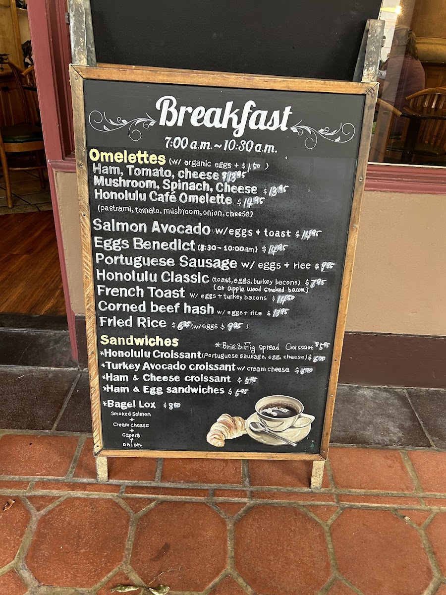 Adding to the charm, the serene ambiance allows for a peaceful dining experience, either indoors or in their inviting outdoor seating. Customers like Allison and Micky highlight the irresistible breakfast sandwiches, expertly crafted with fresh ingredients, while others praise the refreshing smoothies that perfectly complement any meal. The friendly staff enhances your visit, pouring passion into every dish served. Whether you seek a cozy place to unwind or a quick bite before exploring, Honolulu Cafe is the ideal stop for great food and delightful experiences.